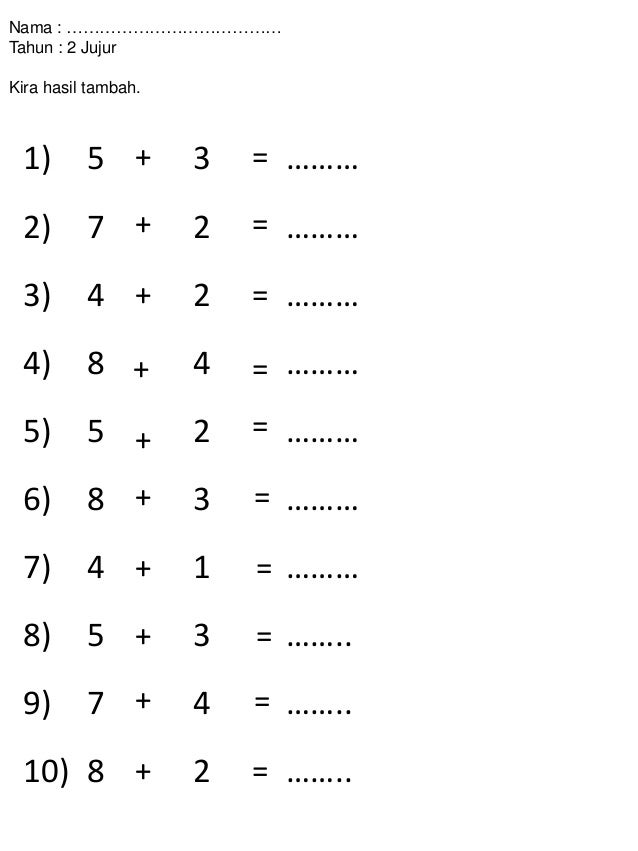 Koleksi Soalan Latih Tubi Matematik Tahun 2 Tcer My
